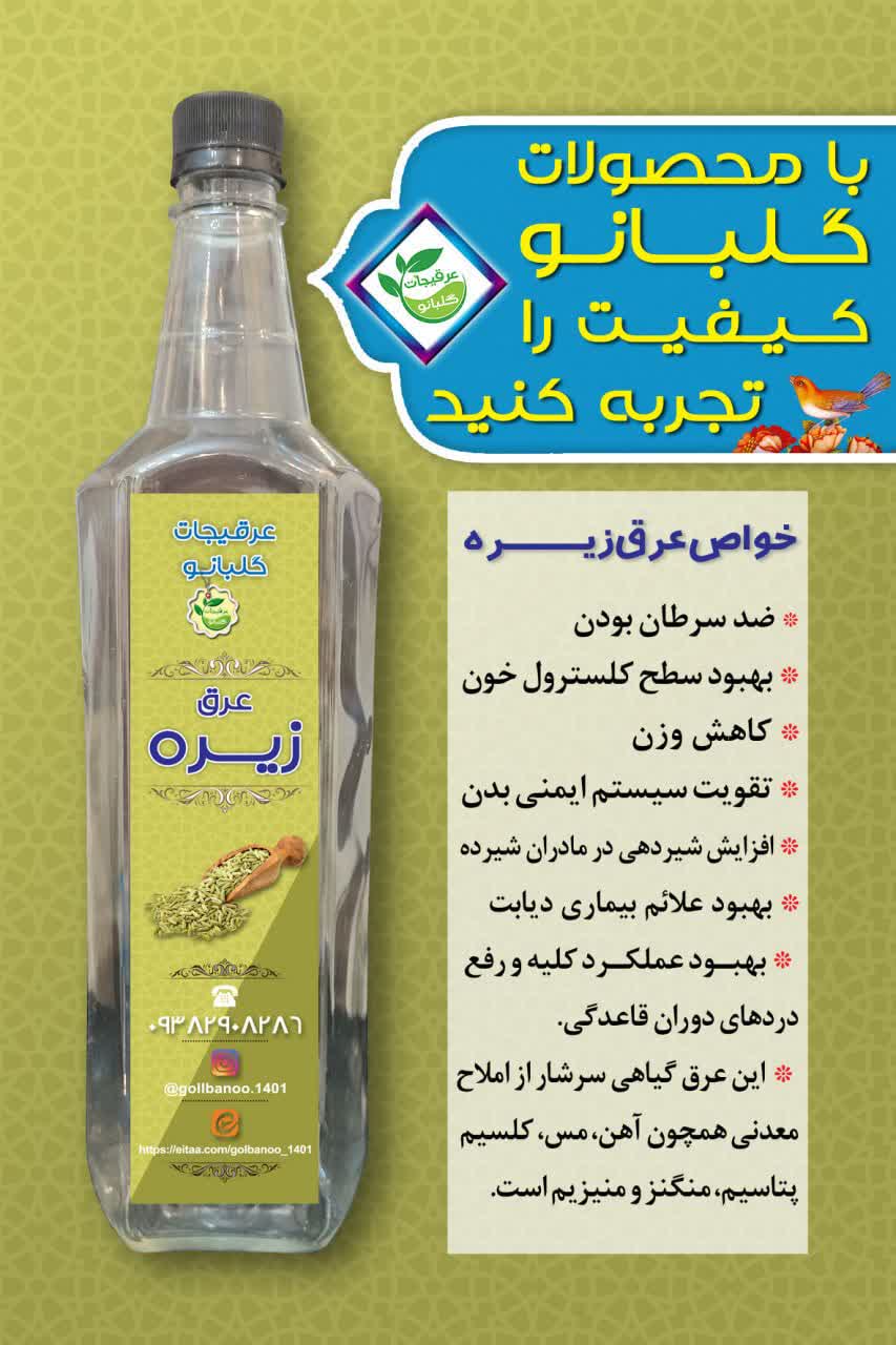 عرق زیره درجه یک قمصر کاشان گلبانو ـ یک لیتر