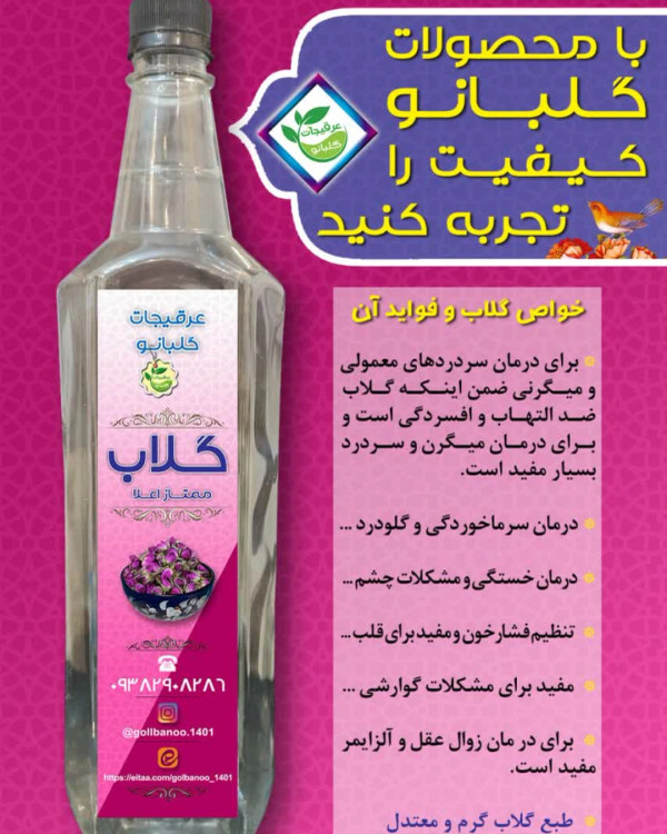 گلاب ممتاز درجه یک قمصر کاشان گلبانو - 1 لیتر