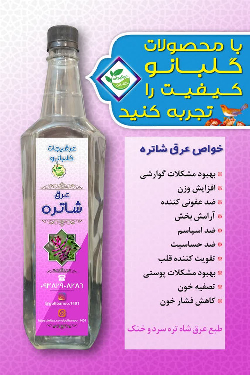عرق شاتره درجه یک قمصر کاشان گلبانو - 1 لیتر